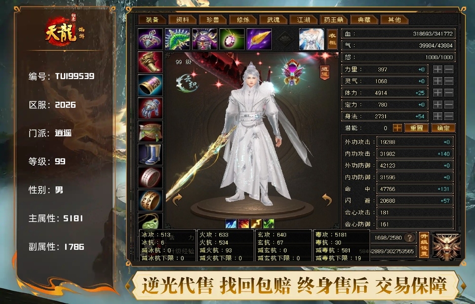 全区第一逍遥,各种都是顶配,加上暗器护体有37万多的血