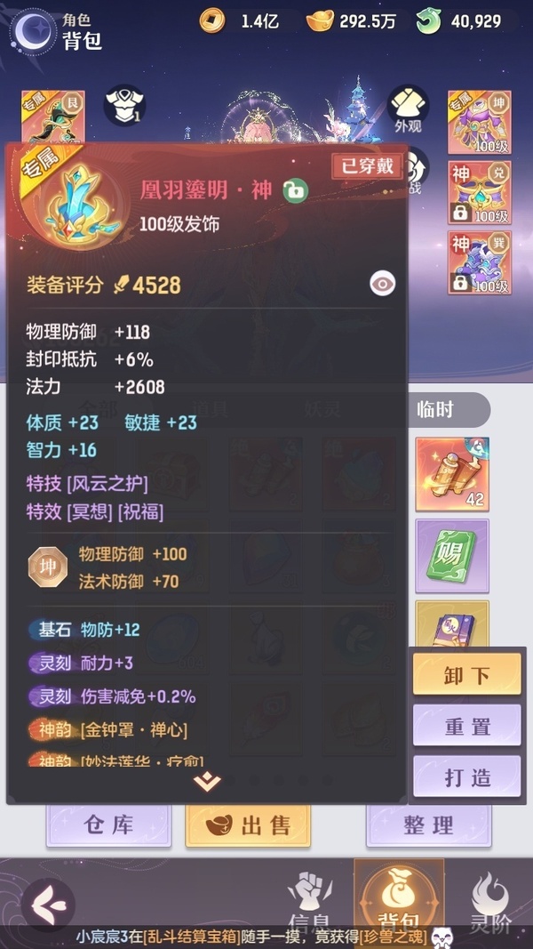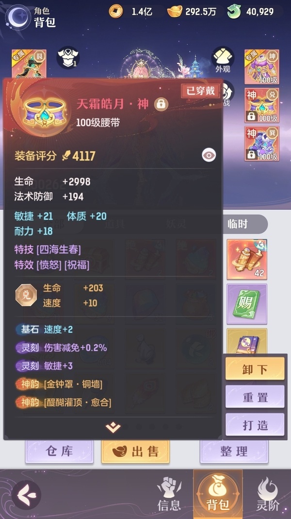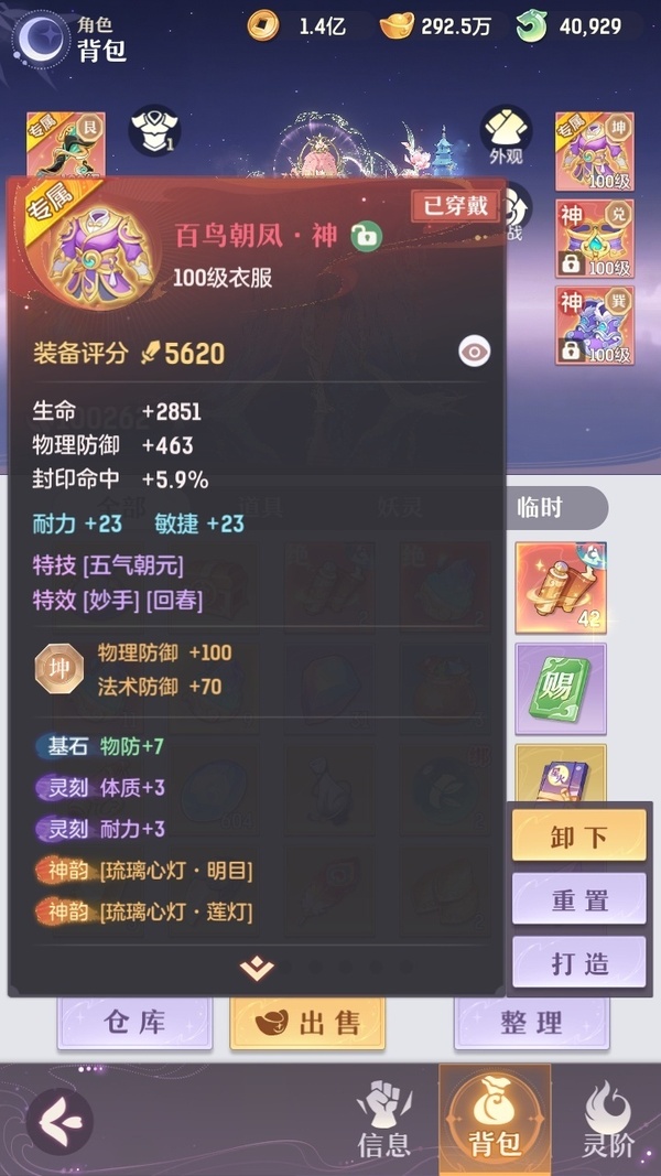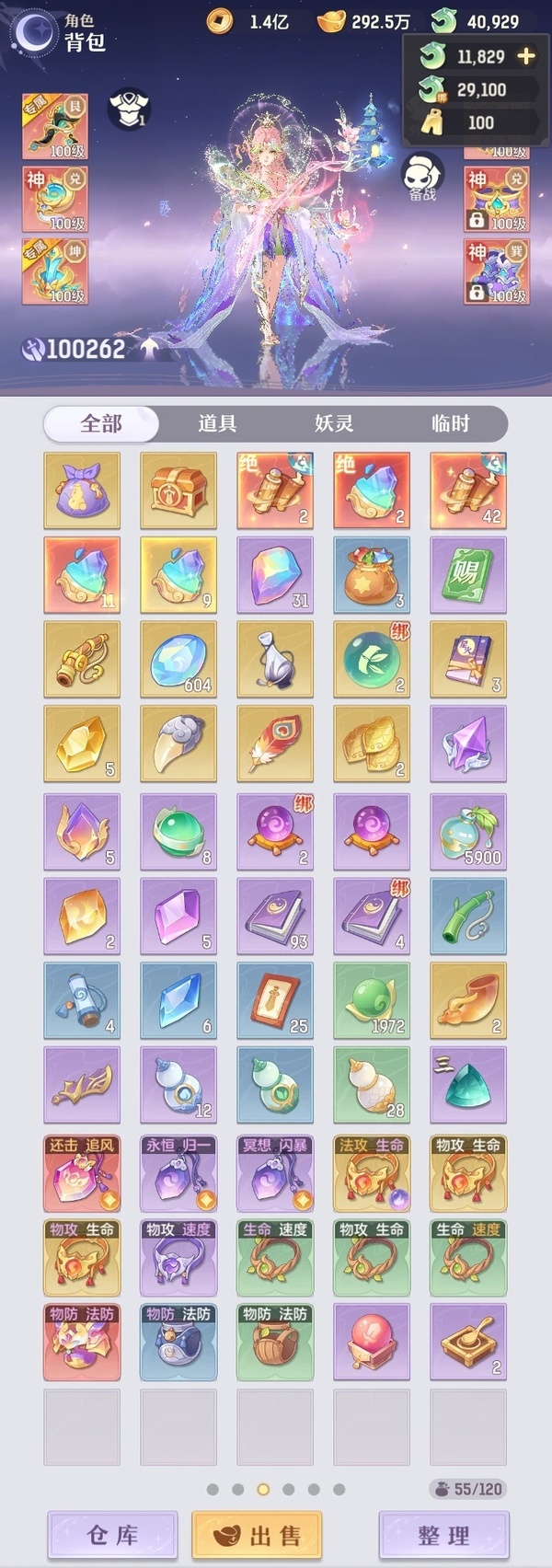 颜值:22639 | 等级:109 | 普陀 | 神兽数:7 | 法宝颜色统计:10红0蓝 | 总评分:446765 | 角色评分:100262 | 妖灵评分:226541 | 灵师评分:119962 | 倾天三 | 淬金曜蚀,织梦星海,乘波踏浪,山君现,清寒羽冽,灵鸢一梦,墨染尘烟,星河揽月,离火苍龙,九春韶华,玉兔月赏,火树银花,哈?我当武器?,碎梦语情,炙烤大串,一刹雷鸣 | 蝶恋芳菲 | 乌蹄·照夜,祥云,太一驴,嘟嘟雪橇,蟹有钳,钱多多,灵华引,星昀渡,比翼同舆,万海真君,罗帷七香车,血蚀苍牙,浪起来,飞起来·壹号,负山海,北域霜枭,跃龙门,鸭与云游,飞龙在天,红莲·出尘,兔球,风火乾坤,大荒之主,海月璃梦,贯日神君,玄夜星羚,通明心剑,焚天火凤,花将军,招财进喵,初弦瑶桂,乘风入梦,狐心入梦,风驰电掣,踏火焚夜,凤蝶·梦浮生 | 【买号找回永久包赔】