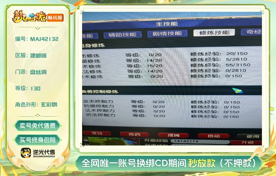 1盘丝4普陀带天阵准飞升号,4个号有烹饪宝宝寿命紫气豪宅,1500点永久仙玉家具礼包,带任务装备宝宝,每个号都有孔装轻松通刷一切,由于有两个号不能上藏宝阁,可以配合解绑手机号和将军令,没时间玩了便宜处理了,有其他问题可以联系游戏ID11101947