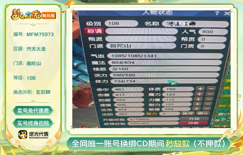 【MFM75973】 | 等级:108 | 普陀山 | 无换绑CD | 超级绿通 | 【逆光代售卖号0手续费】【买号找回永久包赔】