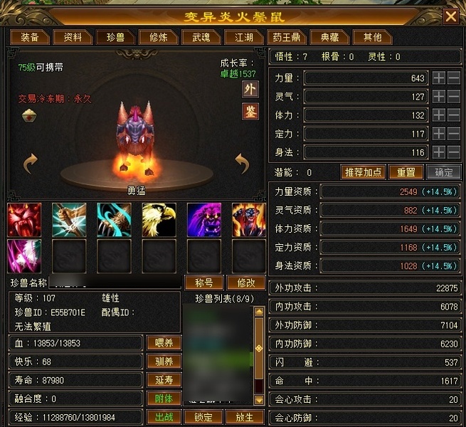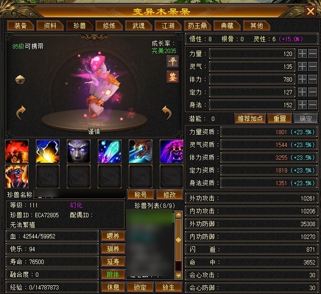 充值3.5万,卖个零头 暗器护体后42.8万血,吃的4级精华没有加任何状态