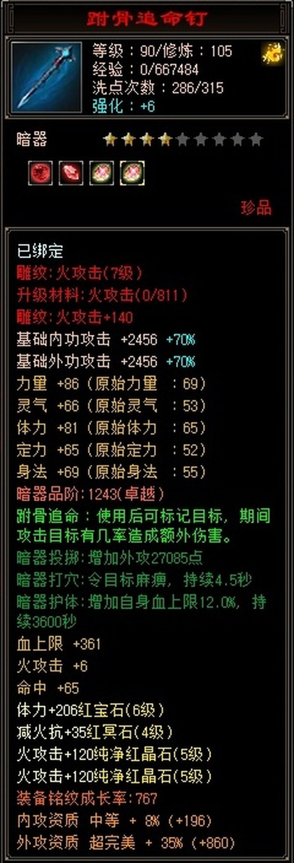 【TCG55698】 | 明教 | 等级:105 | 主属性:3673 | 副属性:1065 | 男 | 主火攻