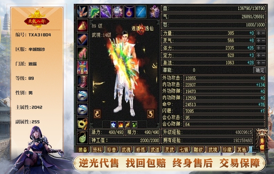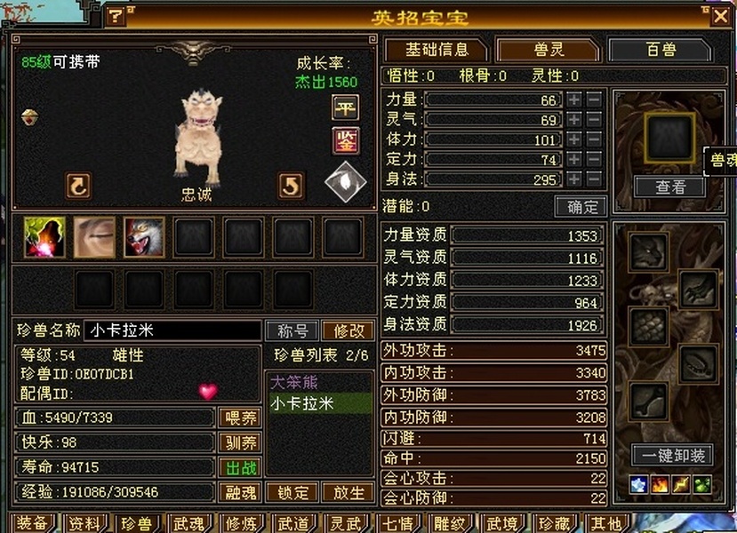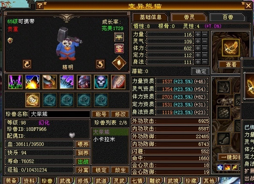 永久骆驼坐骑,带神兽魂,五星完美胆小宝套,洗好的金乌兽魂,还有一个附体熊猫,上手即玩,副本通刷