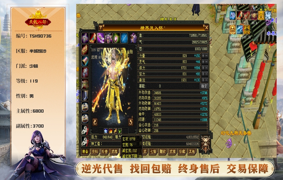 四修过万属性火炕少林 伤害高 带金甲 满8雕文 便宜出