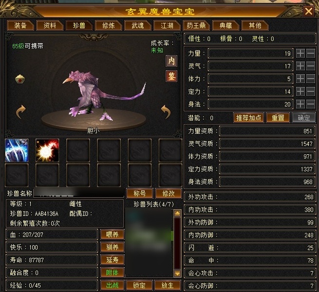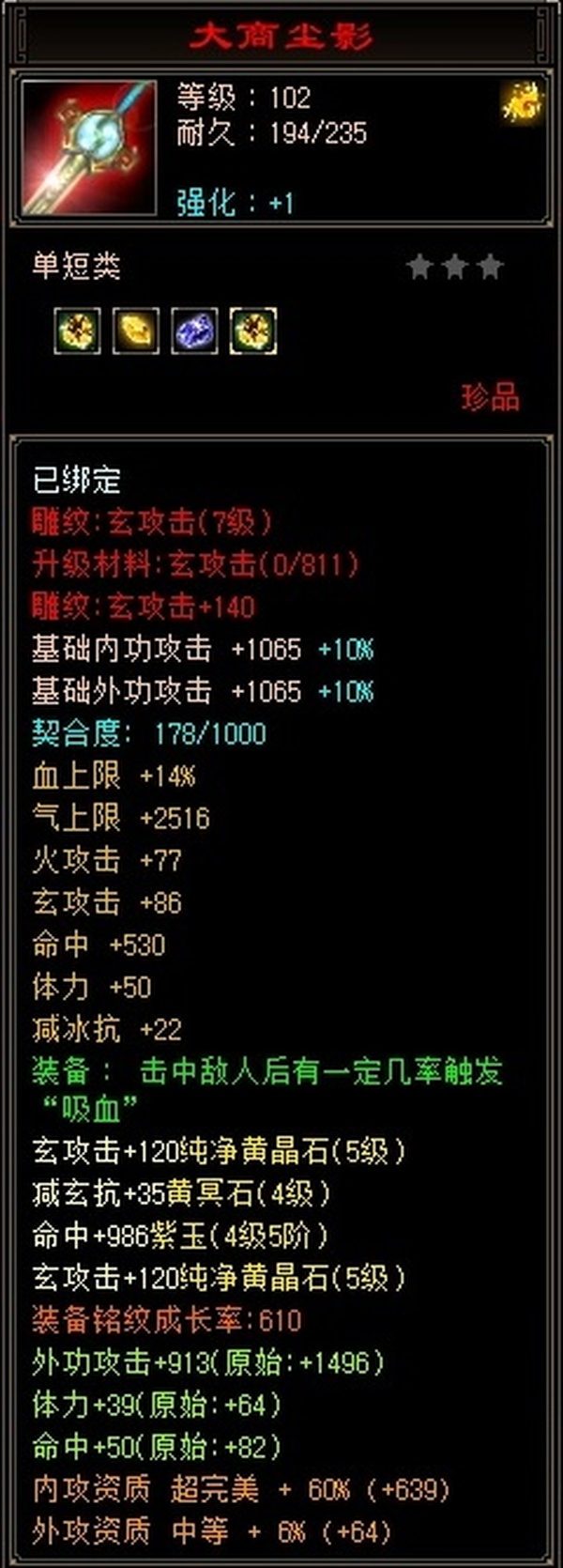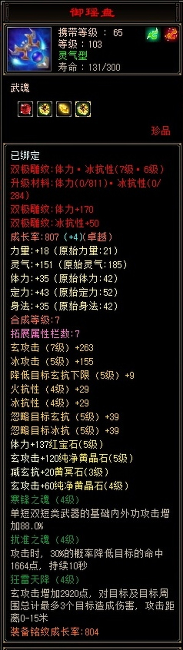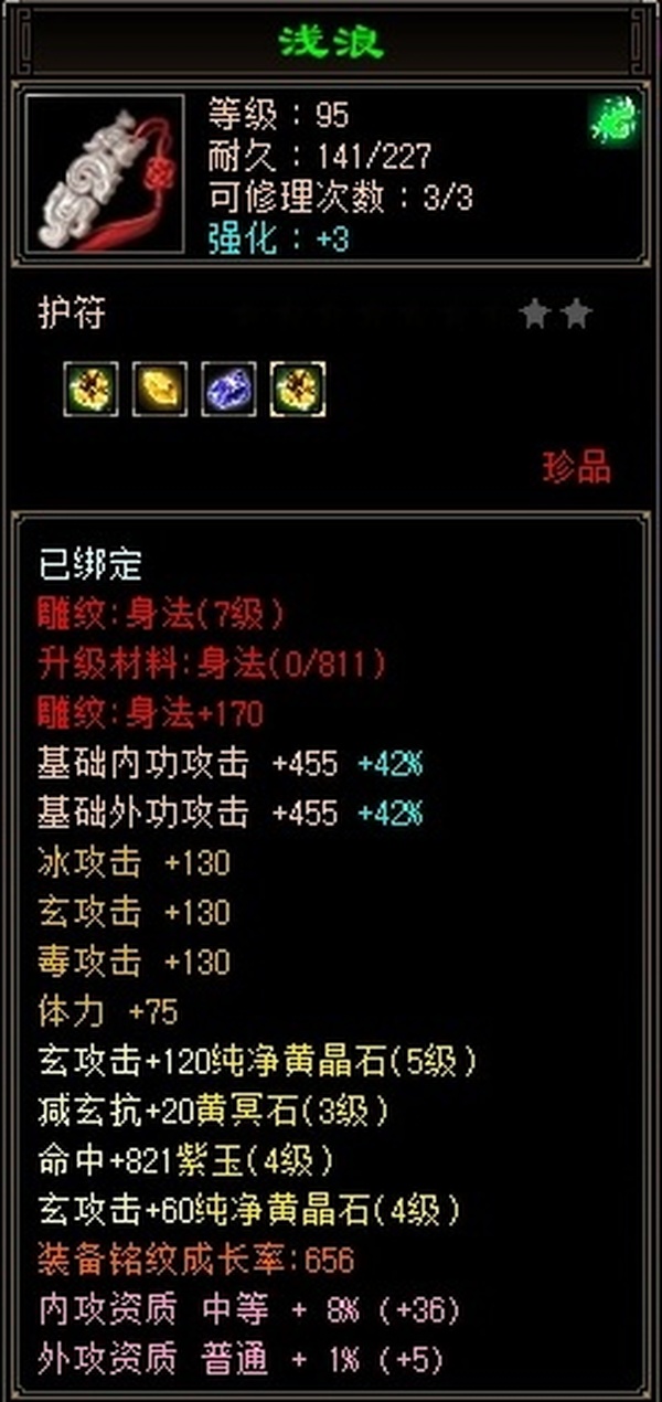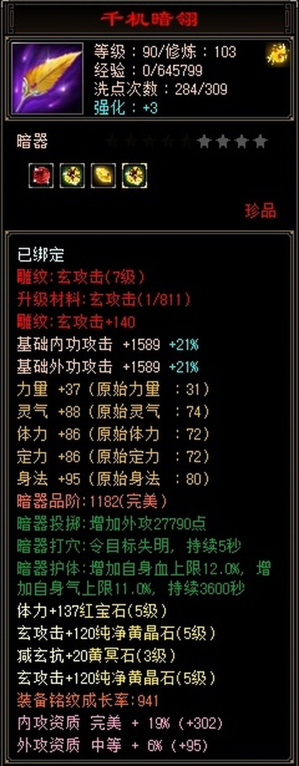 武当 | 等级:103 | 主属性:3583 | 副属性:1576 | 男 | 主玄攻