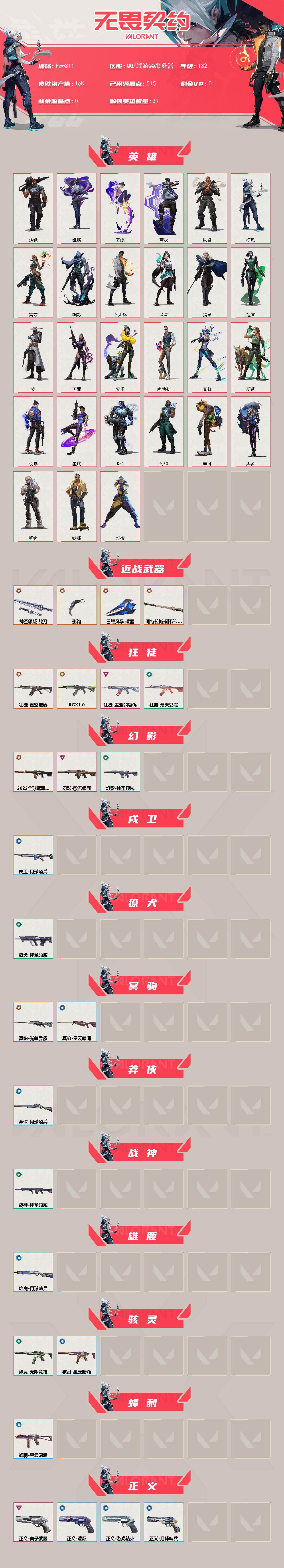 【WQS01351】 | 皮肤资产价值:16390 | 影钩,日耀风暴遗器,神圣领域战刀 | 2022全球冠军赛幻影,般若假面幻影,神圣领域幻影 | 盖亚的复仇狂徒,虚空遗器狂徒,漫天彩霞狂徒,RGX11zPro狂徒 | 月球哨兵正义,离子武器正义 | 艾沃莉的梦之翼鬼魅,星云暗涌鬼魅 | 光荣异象冥驹 | 月球哨兵戍卫 | 神圣领域獠犬 | 月球哨兵莽侠 | 星云暗涌骇灵 | 神圣领域战神 | 月球哨兵雄鹿 | 神圣领域狂怒 | 【买号找回永久包赔】