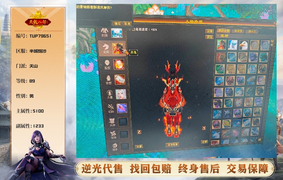 公众号已解绑 雪猿赤兔双坐骑 扫荡币5880 稀有时装 三级幻视 帅气又抗打