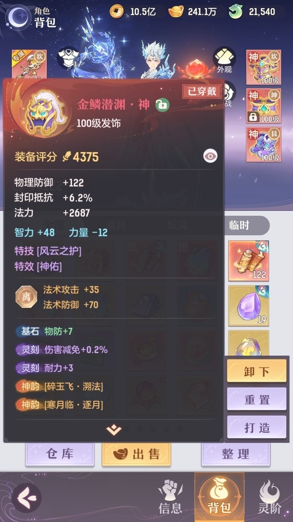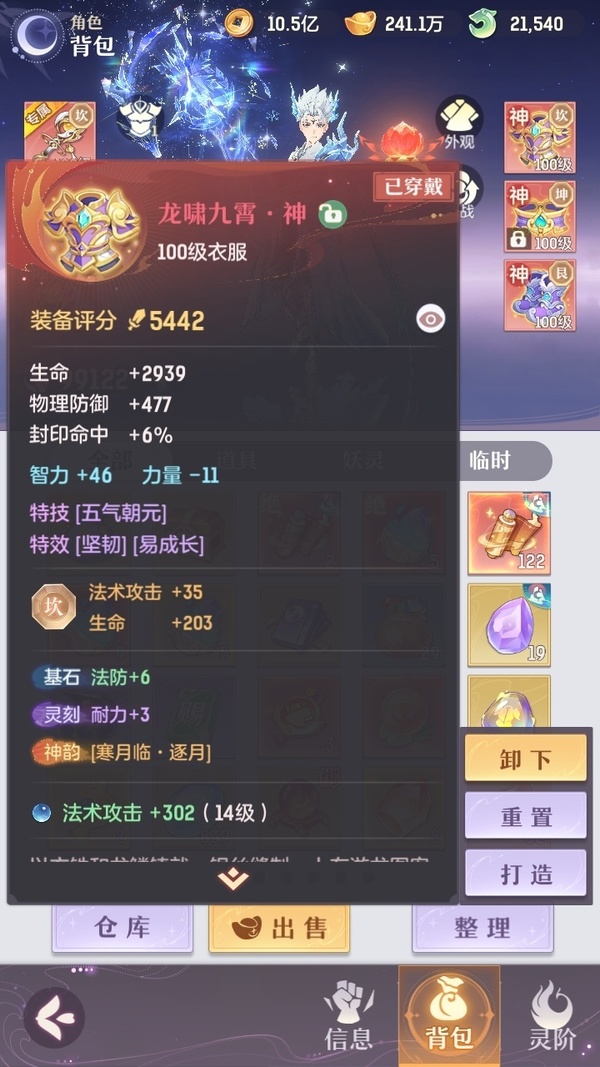 颜值:13592 | 等级:109 | 广寒 | 神兽数:5 | 法宝颜色统计:10红0蓝 | 总评分:443256 | 角色评分:99122 | 妖灵评分:224385 | 灵师评分:119749 | 倾天三 | 离火苍龙,织梦星海,九春韶华,乘波踏浪,山君现,清寒羽冽,哈?我当武器?,碎梦语情 | 蝶恋芳菲,火神·赤曦 | 祥云,太一驴,大荒之主,风火乾坤,钱多多,气球派对,灵华引,星昀渡,万海真君,焚天火凤,通明心剑,招财进喵,初弦瑶桂,负山海,凤蝶,风驰电掣,踏火焚夜,跃龙门,鸭与云游 | 【买号找回永久包赔】