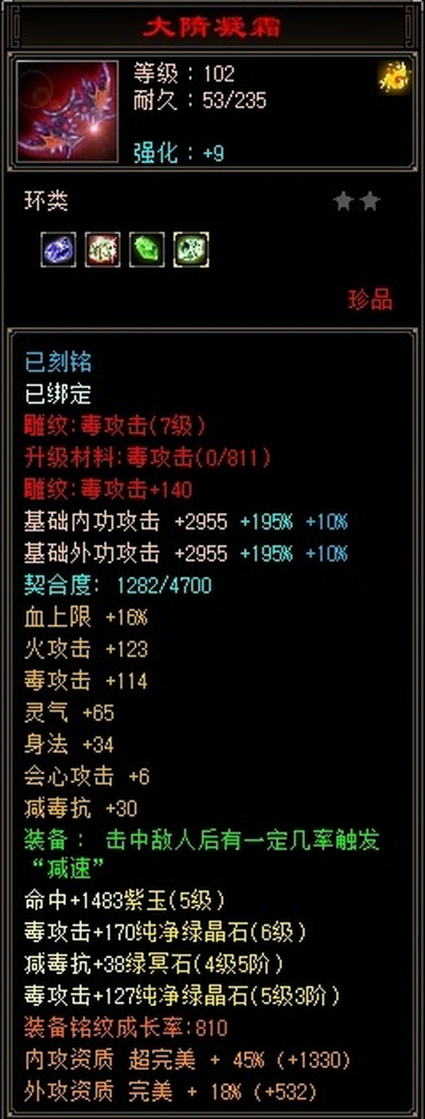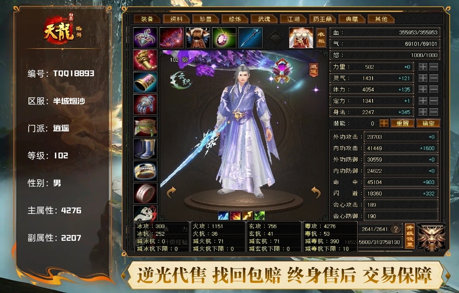 【TQQ18893】 | 逍遥 | 等级:102 | 主属性:4276 | 副属性:2207 | 男 | 主毒攻