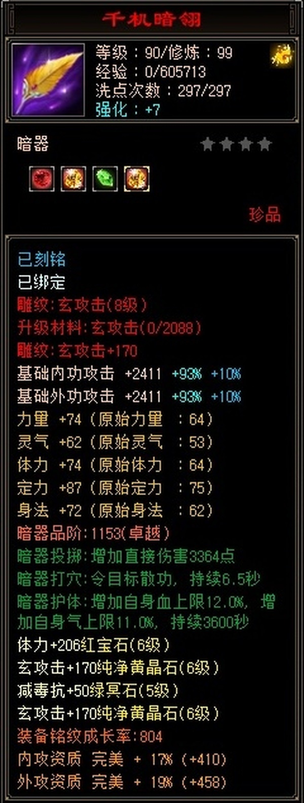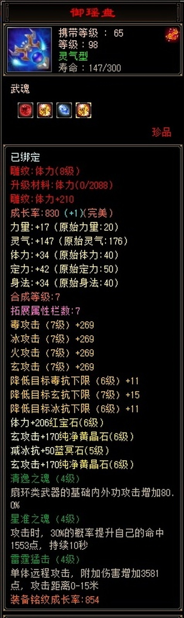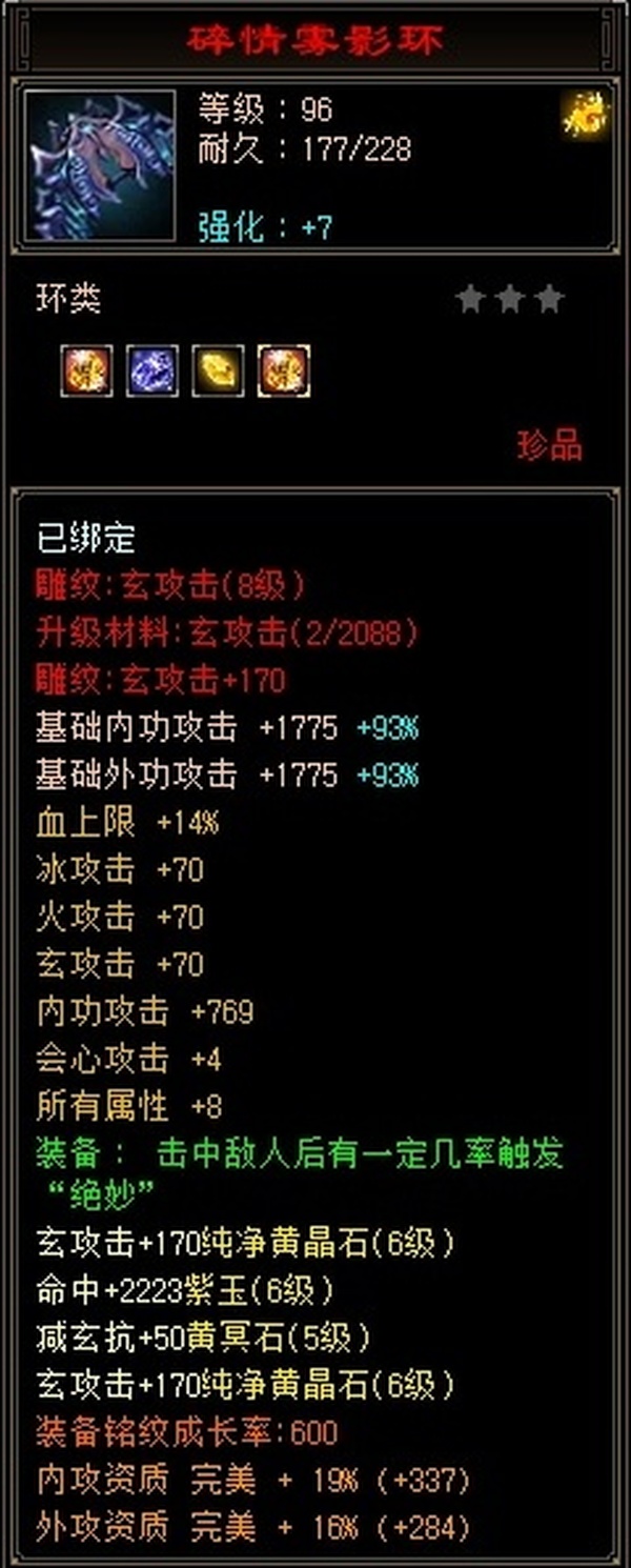 100级等级第一梯队,极限6级号,全8雕文,细节到位,后期可配合格子!