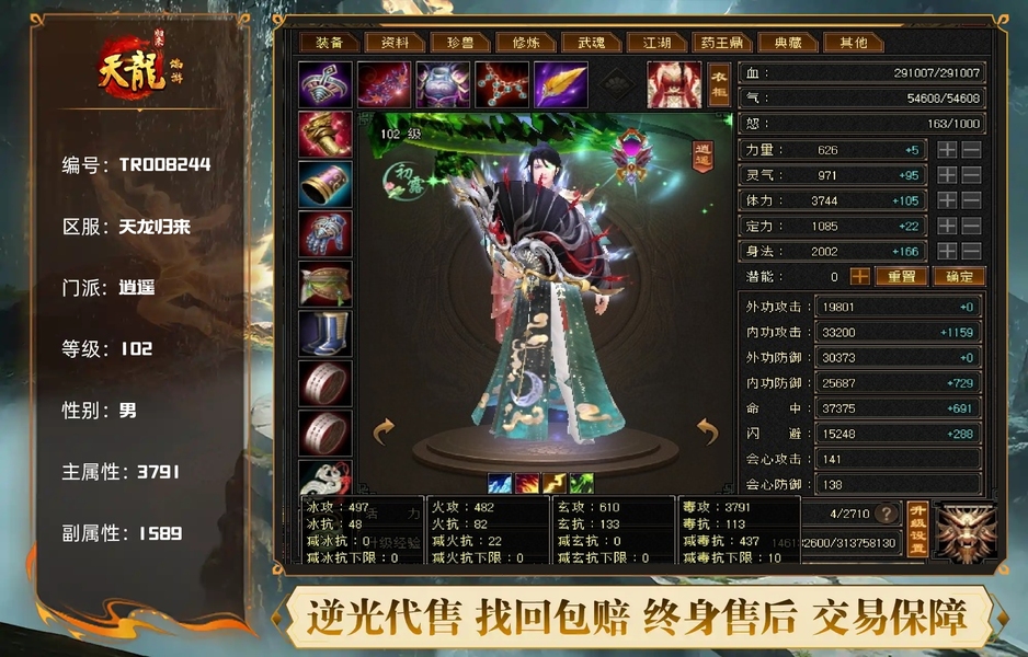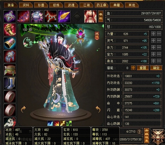 双排五属性带一颗6属性宝石,400多减抗带三十附体,没吃药没开鼎,伤心退游大甩卖