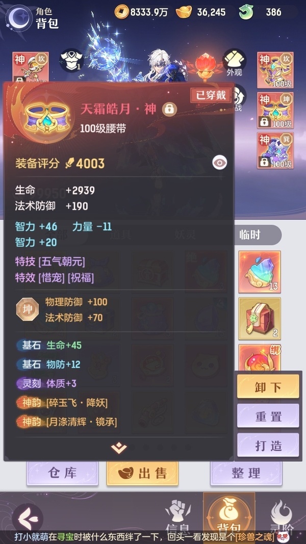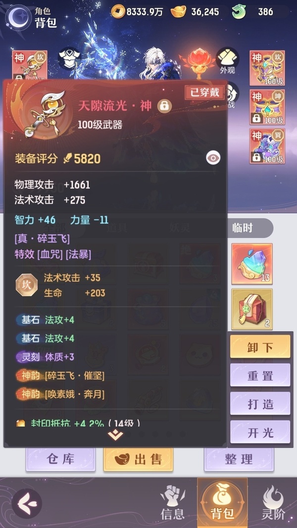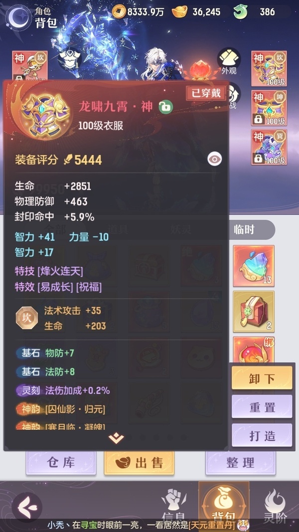 颜值:25180 | 等级:109 | 广寒 | 神兽数:4 | 法宝颜色统计:10红0蓝 | 总评分:447528 | 角色评分:99950 | 妖灵评分:227552 | 灵师评分:120026 | 倾天三 | 织梦星海,淬金曜蚀,乘波踏浪,山君现,清寒羽冽,灵鸢一梦,墨染尘烟,星河揽月,离火苍龙,玉兔月赏,九春韶华,火树银花,哈?我当武器?,炙烤大串,碎梦语情,一刹雷鸣 | 蝶恋芳菲,火神·赤曦 | 乌蹄·照夜,嘟嘟雪橇,吾皇·萌骑,钱多多,蟹有钳,气球派对,灵华引,星昀渡,比翼同舆,万海真君,罗帷七香车,蕴灵天剑,浪起来,血蚀苍牙,飞起来·壹号,负山海,跃龙门,鸭与云游,神日金乌,马上到,红莲·出尘,飞龙在天,大荒之主,海月璃梦,贯日神君,玄夜星羚,祥云·虹光,焚天火凤,花将军,招财进喵,初弦瑶桂,乘风入梦,鼠鼠·星愿巫,狐心入梦,风驰电掣,踏火焚夜,凤蝶·梦浮生,逍遥羊 | 【买号找回永久包赔】