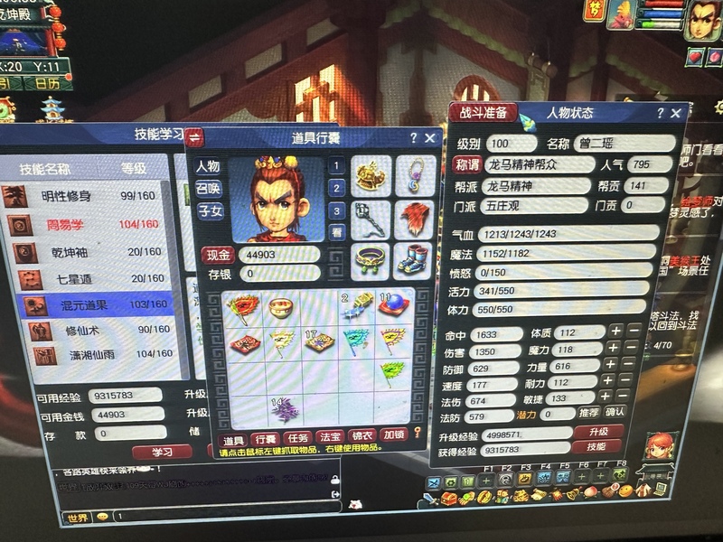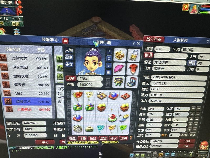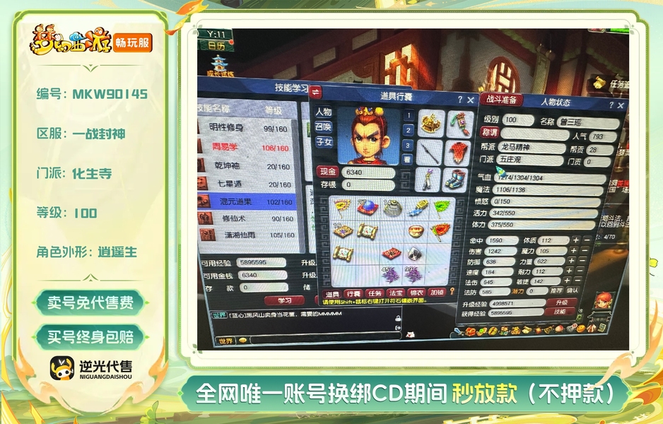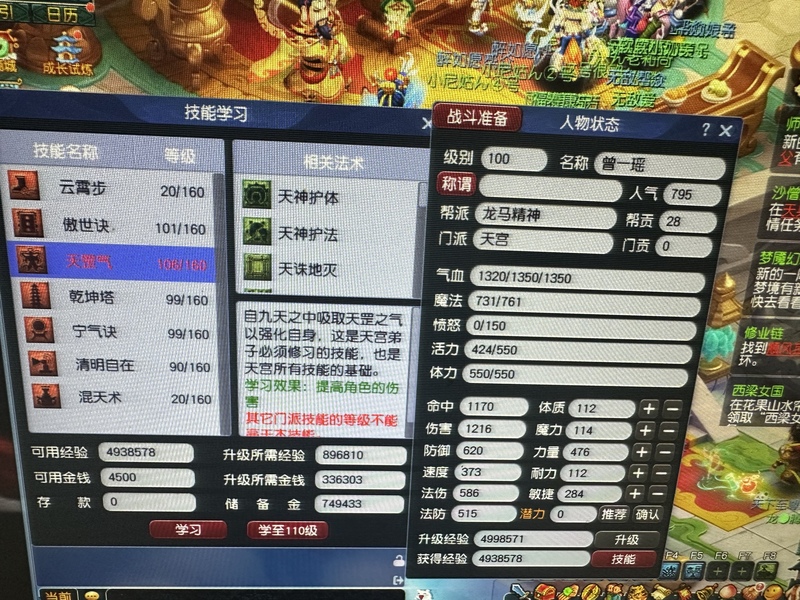 一化生三五庄一天宫,带100武器头盔基本都是三四段宝石还有两个风袋,有天阵有成长礼包