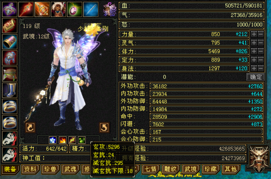【TTH54123】 | 少林 | 等级:119 | 主属性:5296 | 副属性:1734 | 男 | 主玄攻 | VIP2 | 畅游账号