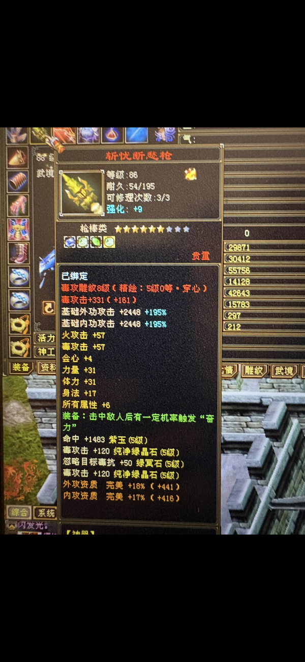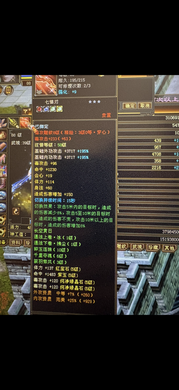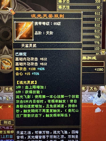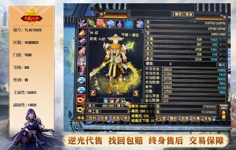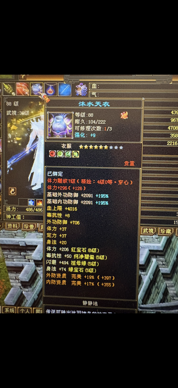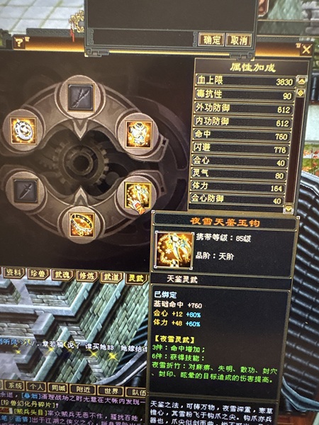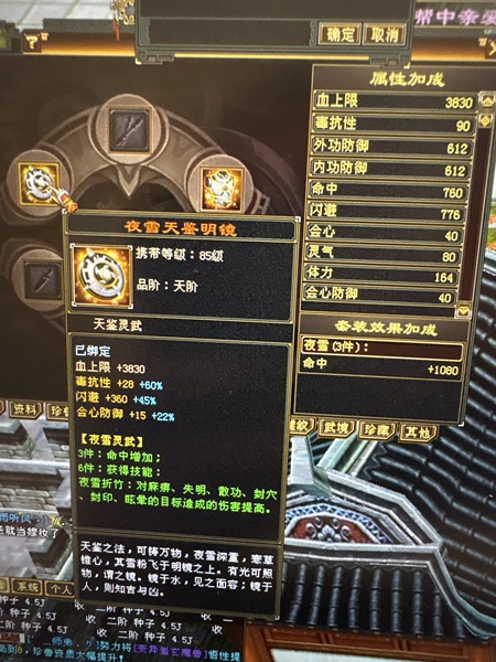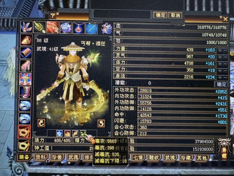 最新更新第一张是最新面板 更新两件灵武 全5。四修大丐帮满修炼心法。530多的减抗金箍棒 时装多 幻视多 雪原坐骑。 极品七情刃 5神。8雕 转星宿相当暴力 原星宿转的丐帮 装备不用改了 差个好附体