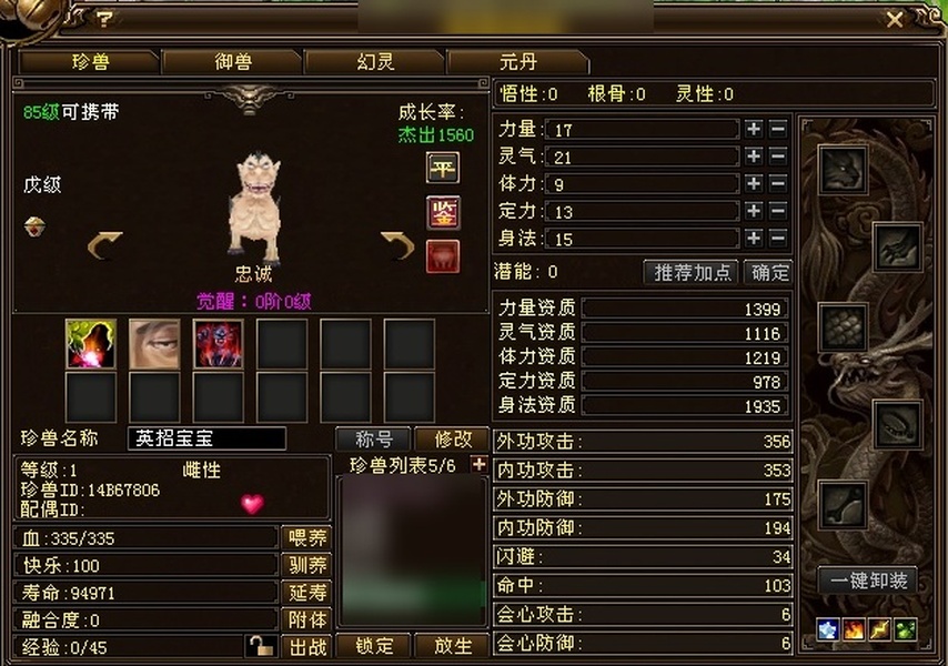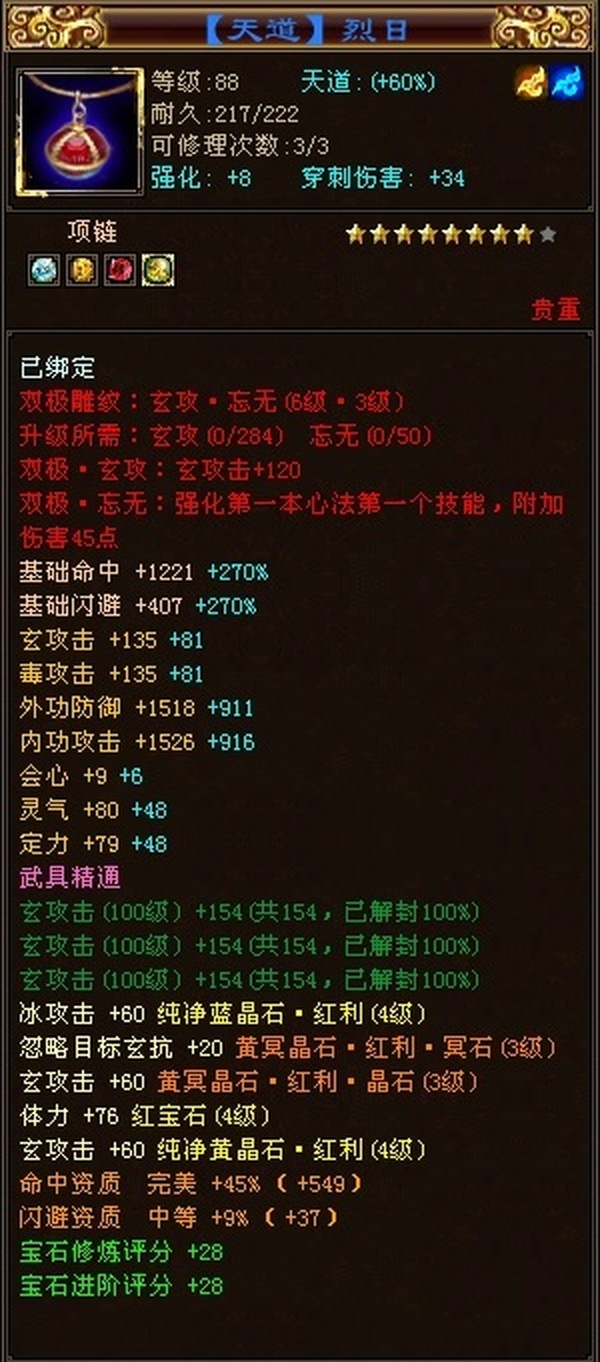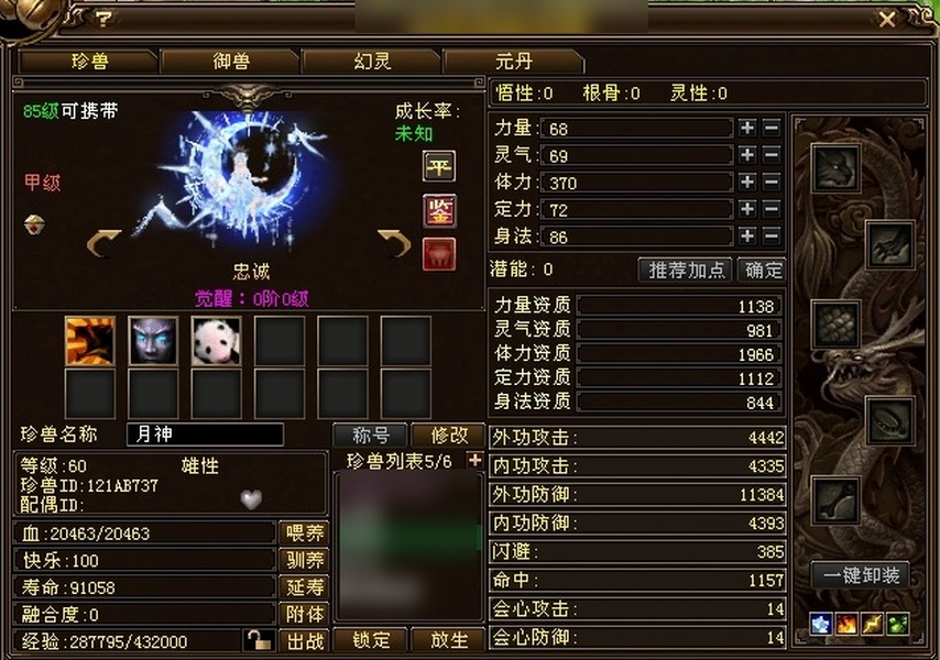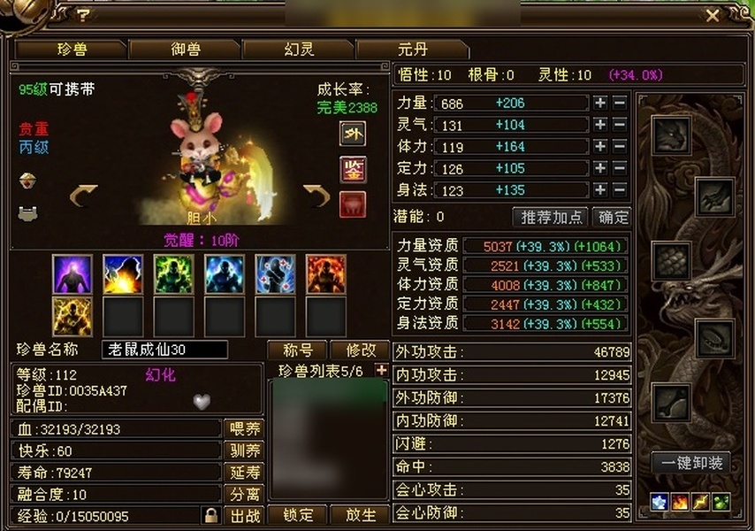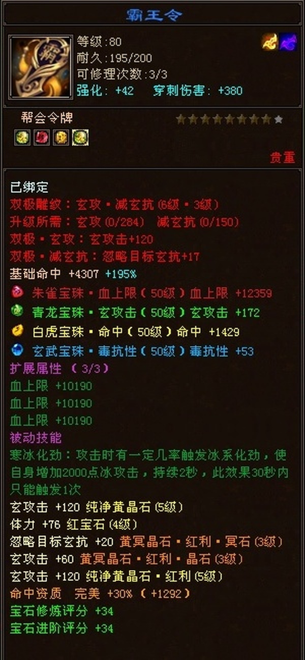 天龙 | 等级:102 | 主属性:11664 | 男 | 评分:243683 | 副属性:4296 | 穿刺伤害:2984 | 穿刺减免:234 | VIP0 | 【买号找回永久包赔】