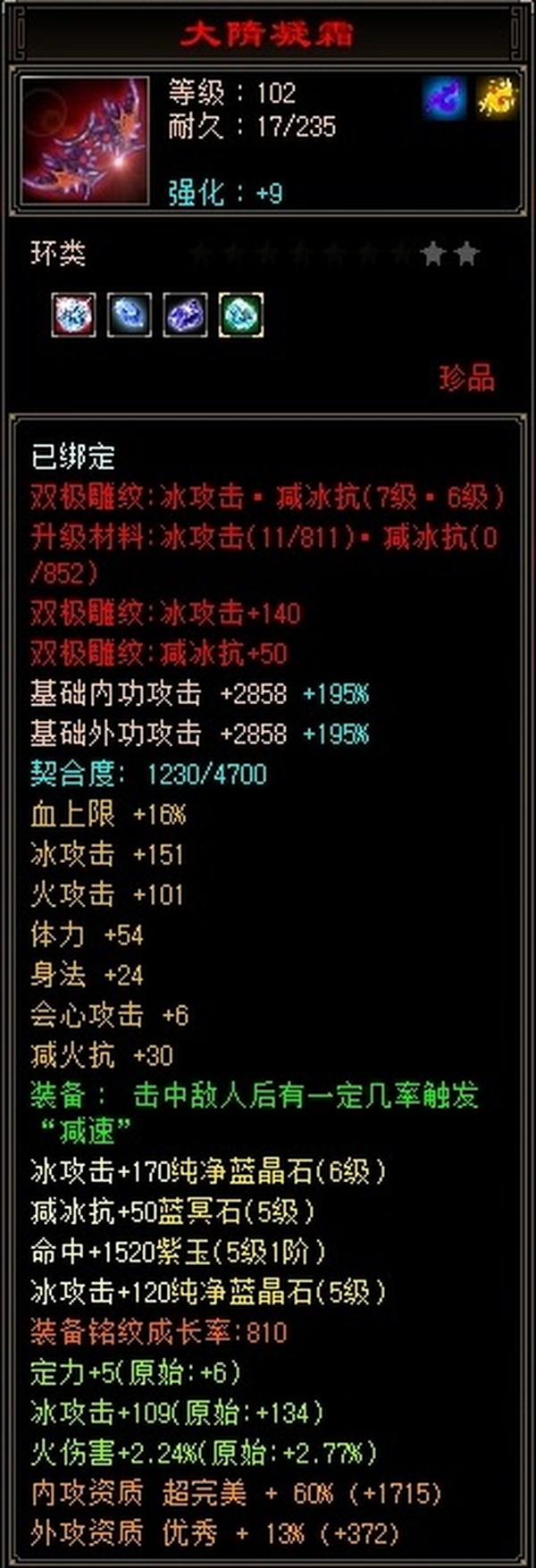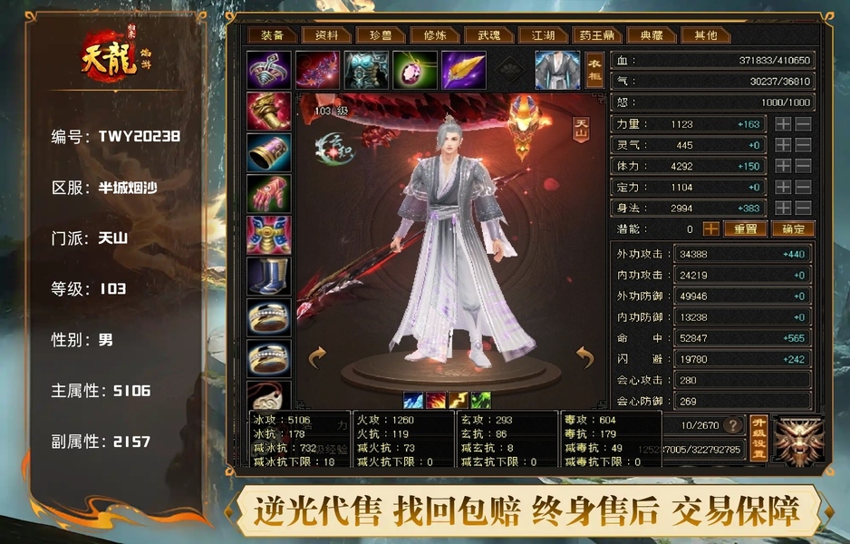 41w血。6属,满5减,冰乍铭文。裸属性,没有开鼎,没有吃药,高命中,高会心。细节号,包里还有4000多金,在买个戒指冰减,大完美武魂冰减升级下。就800+减抗。红仙侣,紫仙侣,白仙侣。都有