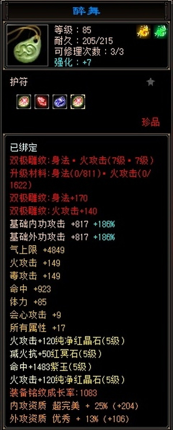 逍遥 | 等级:89 | 主属性:4423 | 副属性:2269 | 男 | 主火攻