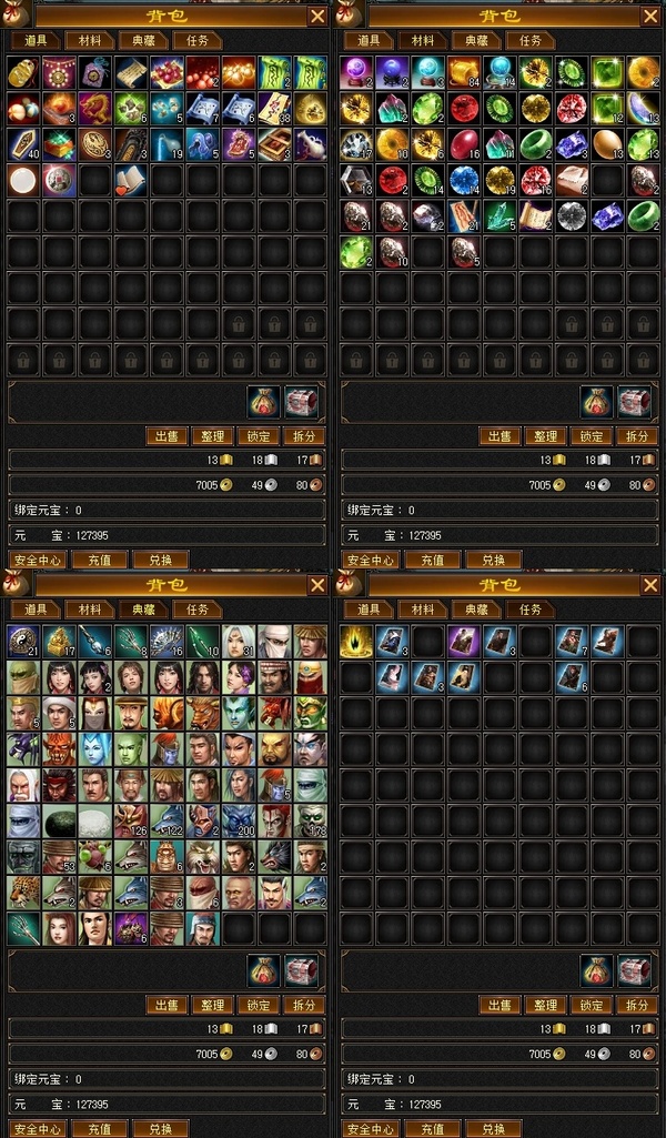 美丽慕容 单排5属性其余4t上满 1700裸面板状态号上带了3200人民币的元宝 还有7000j
