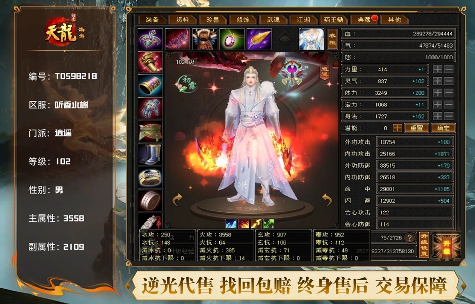 【TOS98218】 | 逍遥 | 等级:102 | 主属性:3558 | 副属性:2109 | 男 | 主火攻