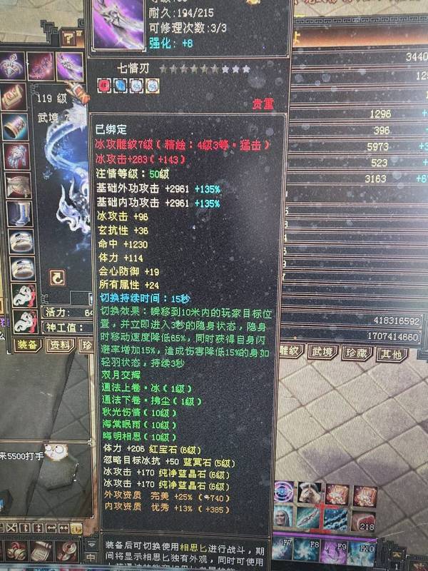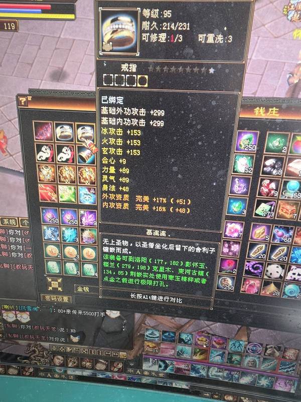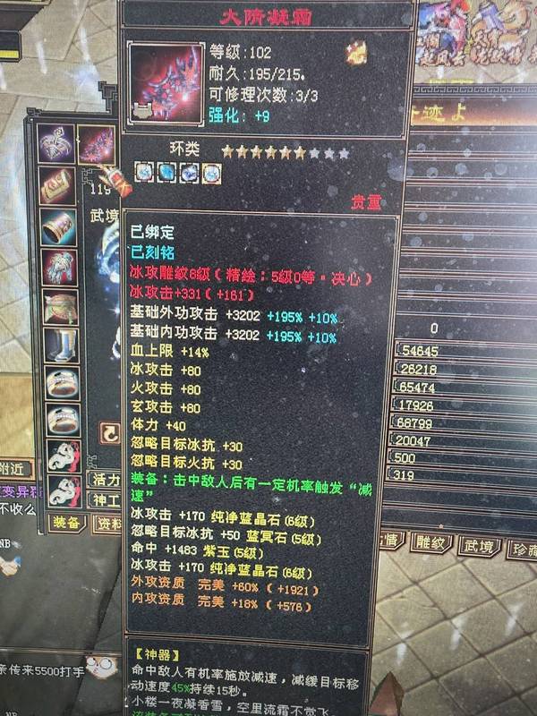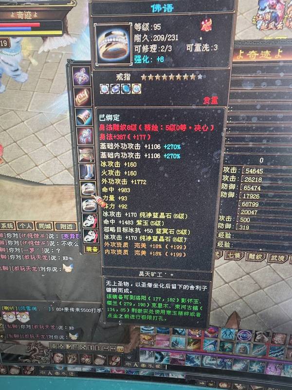 5神,大完美下线19武魂,都是大8星装备,支持对比,2套装备,可以转武当,装备全带命中会心,比一般6665还好,大砍刀别来浪费时间