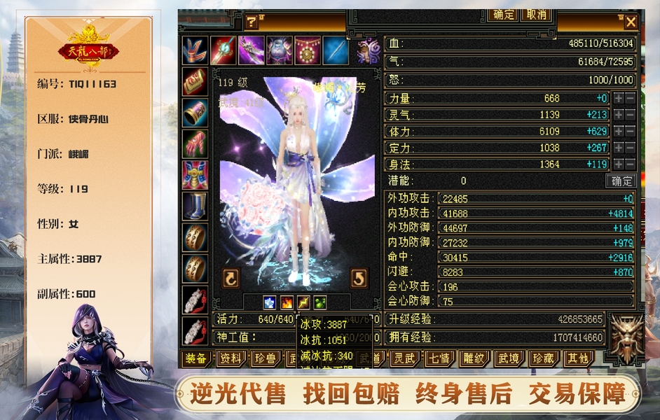 52w血千冰抗5神5带6峨眉 2.7w绑元 能挖花能种植 不带附体可减600 左上角手机不能改!介意勿拍!