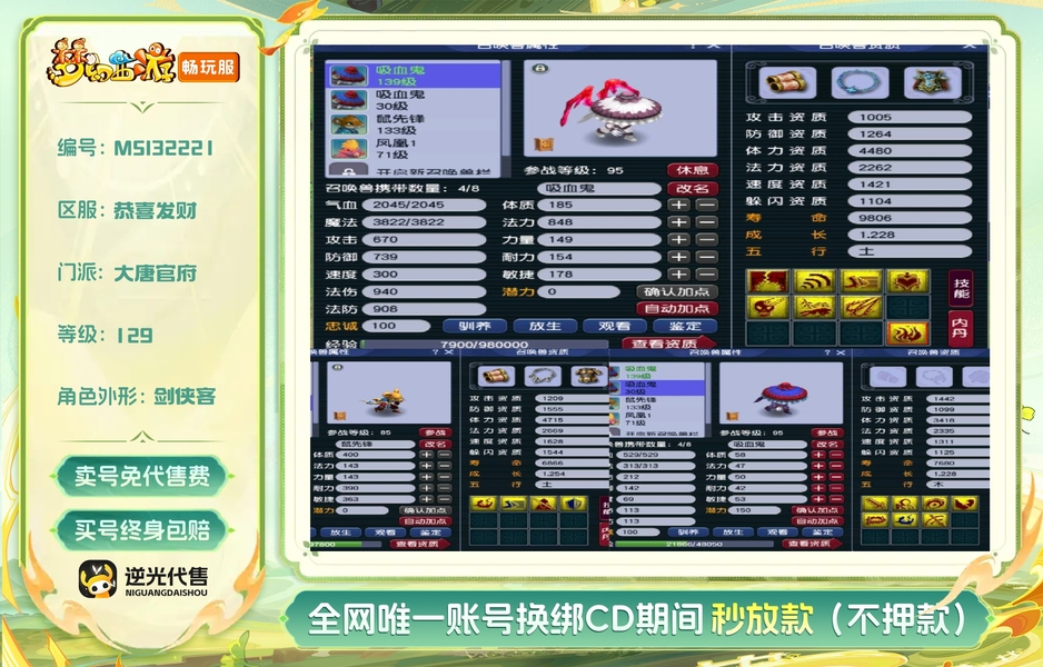 底子过的去,4位靓号带特效 储备还有5000万+足够点满150技能 12亿总经验 开145立马能升级 任务上手无需更新