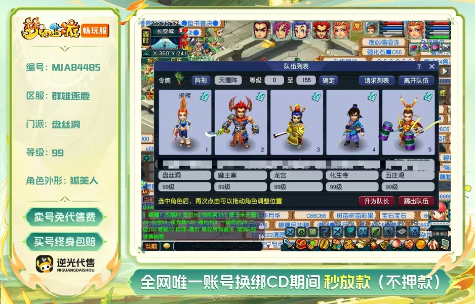 人均变异蛇魅带偷袭,高吸。乾元丹都是1级。自带109人环未开,看上联系。