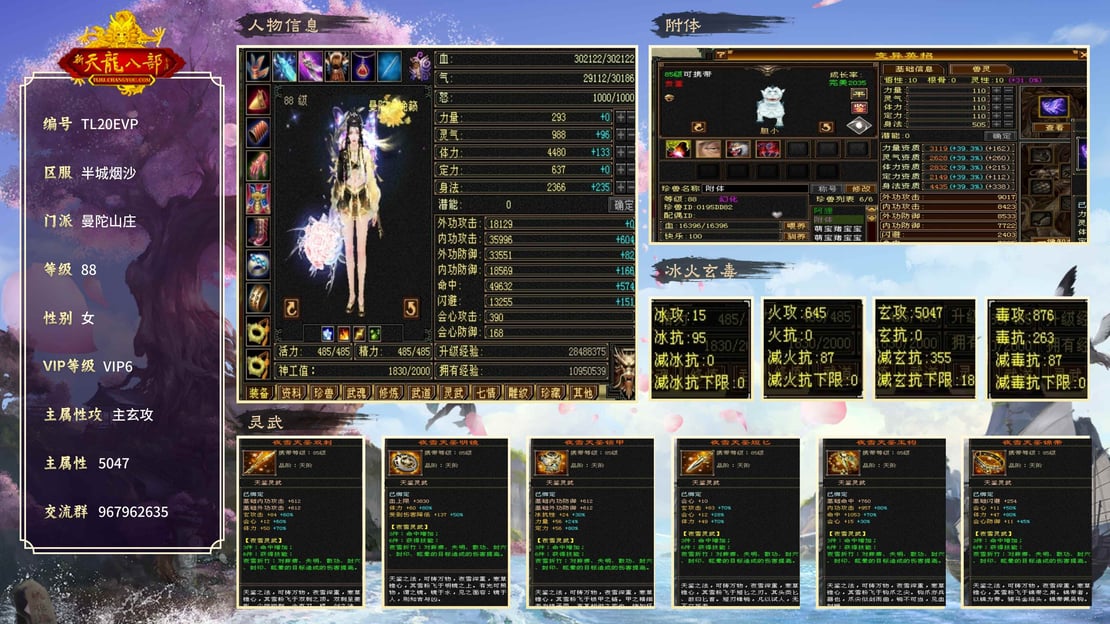 真满5,属性5047,血302122,带极品灵武宝宝