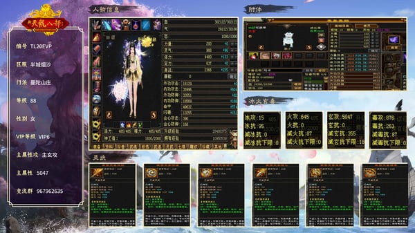 【TL20EVP】 | 等级:88 | 主属性:5047 | 副属性:1536 | VIP6 | 女 | 畅游账号 | 主玄攻 | 曼陀