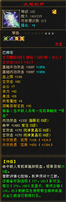 超高颜值门派第一人6级增伤曼陀 广陵散一开伤害爆炸 带30件时装断桥夜雨冬日佳期仲夏夜 两套4级配饰 幻视金箍棒手捧花紫霄剑 银剑匣沙滩帽 满状态近70万血 打怪10w+ 副本永远第一 10级制膳 带顶变谨慎天马一堆BB带2个22级兽灵就值7000 输出附体和打架附体都有 6荒5神 仓库有好多五级石头装备和灵武 纹刻也都5级了 可花瓶可输出 武当少林峨眉可以随时换 带所有出