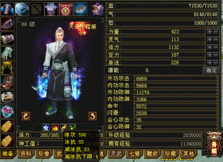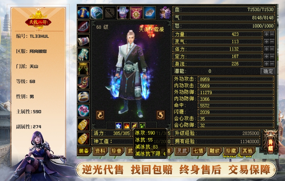 天山 | 等级:68 | 主属性:590 | 副属性:274 | 男 | 主冰攻 | VIP3 | 畅游账号