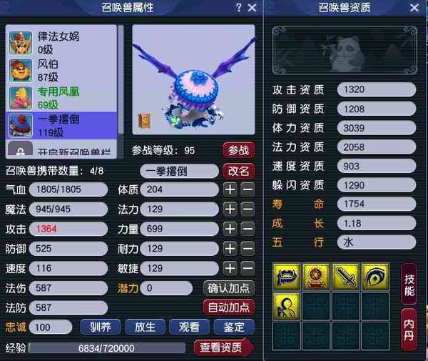 有3.9亿经验,随时可飞升,109成品号装备都满,法修17抗法17防御13.镇海珠12层,满层水风袋带一善恶宝宝,技能满,开四丹,80项链满灵够用,随时可以升级,房子有豪宅,持续更新
