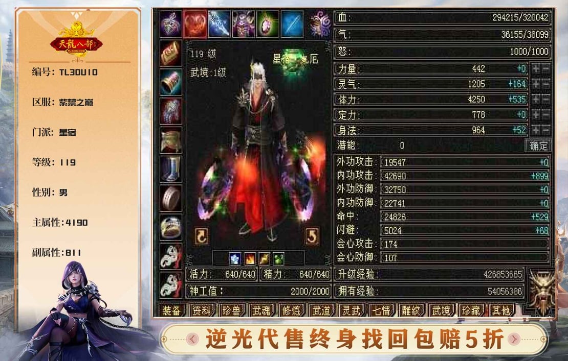 【TL30U10】 | 等级:119 | 主属性:4190 | 副属性:811 | VIP4 | 男 | 畅游账号 | 主毒攻 | 星宿