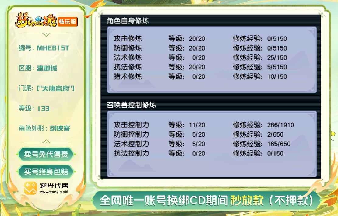 杀气诀满修飞升140大唐,带神兽加龟速,FB通杀,杀气诀衣服和鞋子,双四孔得溅射,任务大家最爱,还有一个双加衣服,仓库一堆东西也没清。飞升完每天还在刷经验,号品超级好,跑环赚了一万多,抓鬼每天给环。现在没空玩了,诚心卖