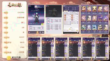 【CA392RO】 | 角色评分:97869 | 等级:109 | 颜值:19836 | 神兽数:7 | 法宝颜色统计:10红0蓝 | 弈剑 | 蝶恋芳菲 | 苍辰、孙悟空、应龙、红瑶 | 离火苍龙、织梦星海、九春韶华、火树银花、乘波踏浪、山君现、清寒羽冽、灵鸢一梦、一刹雷鸣、墨染尘烟、星河揽月 | 乌蹄·照夜、飞龙在天、红莲·出尘、兔球、大荒之主、太一驴、贯日神君、钱多多、七彩灵鲲、比翼同舆、焚天火凤、罗帷七香车、花将军、蕴灵天剑、乘风入梦、飞起来·壹号、狐心入梦、负山海、踏火焚夜、跃龙门、鸭与云游、柯冲冲