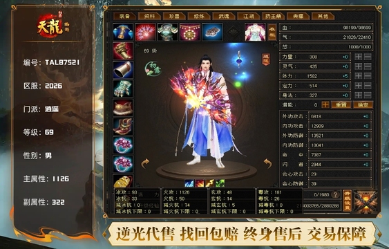 逍遥 | 等级:69 | 主属性:1126 | 副属性:322 | 男 | 主火攻