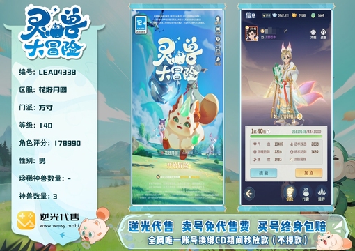 【LEA04338】 | 等级:140 | 仙器:5 | 神兽数量:3 | 角色评分:178990 | 珍兽数量:2 | 方寸 | 男 | 精卫、画中仙 | 貔貅、龙马