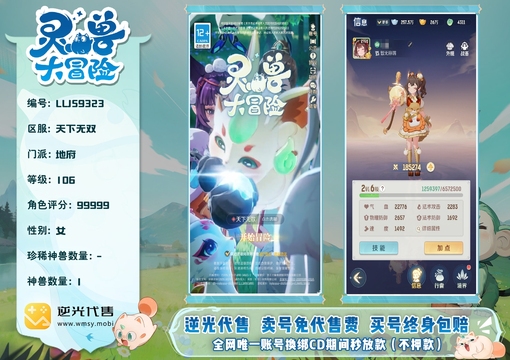 【LLJ59323】 | 等级:106 | 仙器:1 | 神兽数量:1 | 角色评分:99999 | 珍兽数量:2 | 地府 | 女 | 画中仙 | 貔貅、龙马