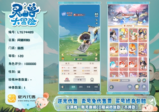 【LTG74489】 | 等级:120 | 仙器:1 | 神兽数量:1 | 角色评分:100000 | 珍兽数量:2 | 蛮岳 | 女 | 年 | 画中仙 | 貔貅、龙马