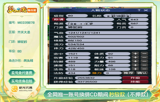【MEO39878】 | 等级:80 | 总经验:1.3万 | 网易邮箱 | 180天尊享特权 | 男 | 狮驼岭【逆光代售卖号0手续费】【买号找回永久包赔】