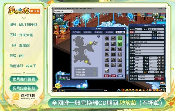 【MLT25443】 | 等级:89 | 总经验:2.1万 | 网易邮箱 | 超级绿通 | 男 | 五庄观 | 鸟翔阵、虎翼阵 | 粉驴、彩驴、灰驴、七彩驴【逆光代售卖号0手续费】【买号找回永久包赔】
