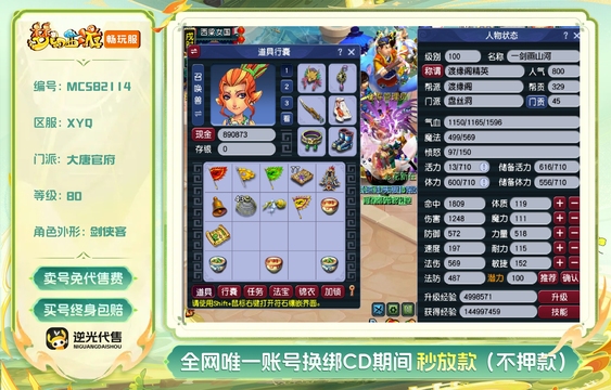 总经验:14000万 | 等级:109 | 龙宫,盘丝洞,魔王寨,普陀山,大唐官府 | 无换绑CD | 180天尊享特权 | 女 | 【逆光代售卖号0手续费】【买号找回永久包赔】