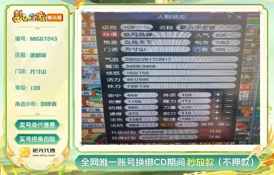 【MIG67243】 | 等级:109 | 总经验:9999999万 | 网易邮箱 | 180天尊享特权 | 男 | 方寸山 | 天覆阵 | 鲲【逆光代售卖号0手续费】【买号找回永久包赔】