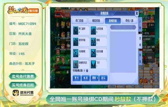 总经验:5000万 | 等级:145 | 五庄观 | 存在换绑CD | 180天尊享特权 | 男 | 【逆光代售卖号0手续费】【买号找回永久包赔】