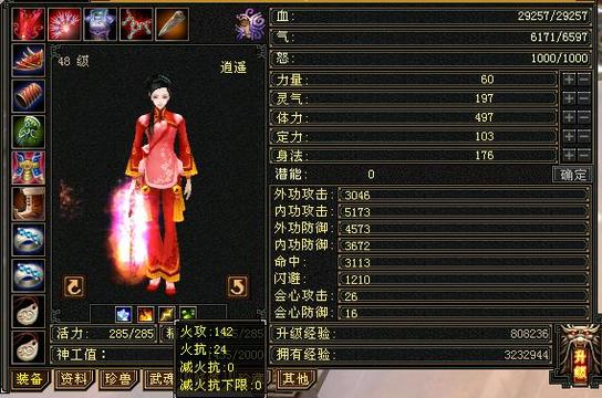 逍遥 | 等级:48 | 主属性:142 | 副属性:50 | 女 | 主火攻 | VIP1