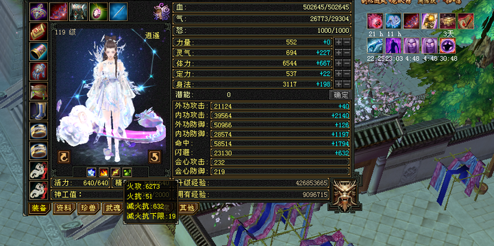 逍遥 | 等级:119 | 主属性:6273 | 副属性:2297 | 女 | 主火攻 | VIP6