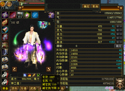 天龙 | 等级:102 | 主属性:1687 | 副属性:1607 | 男 | 主玄攻 | VIP0