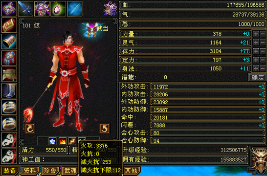 【TMD87879】 | 主属性:3376 | 副属性:2000 | 等级:101 | 武当 | 主火攻 | 男 | VIP4