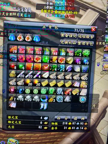 60级防具12毒奶带9级冒险爬塔50层已经过了。五辅助铁枪。可自己绑将军。倒号钱压平台。带4000绑定元宝声望刷满